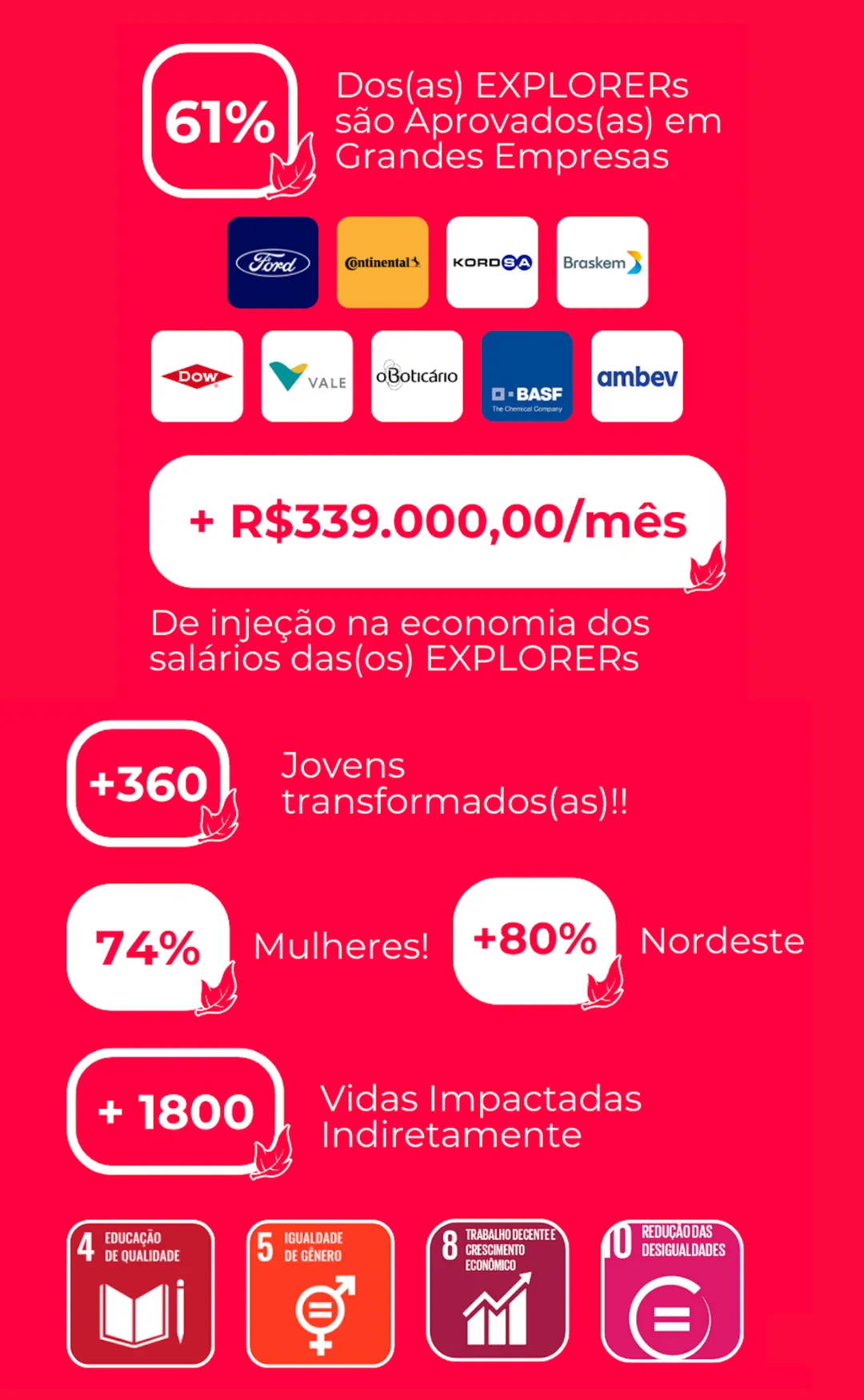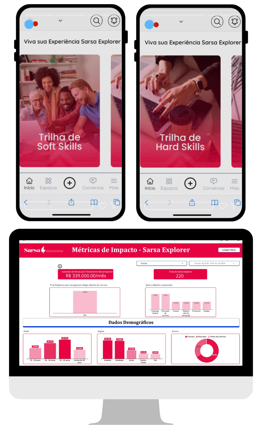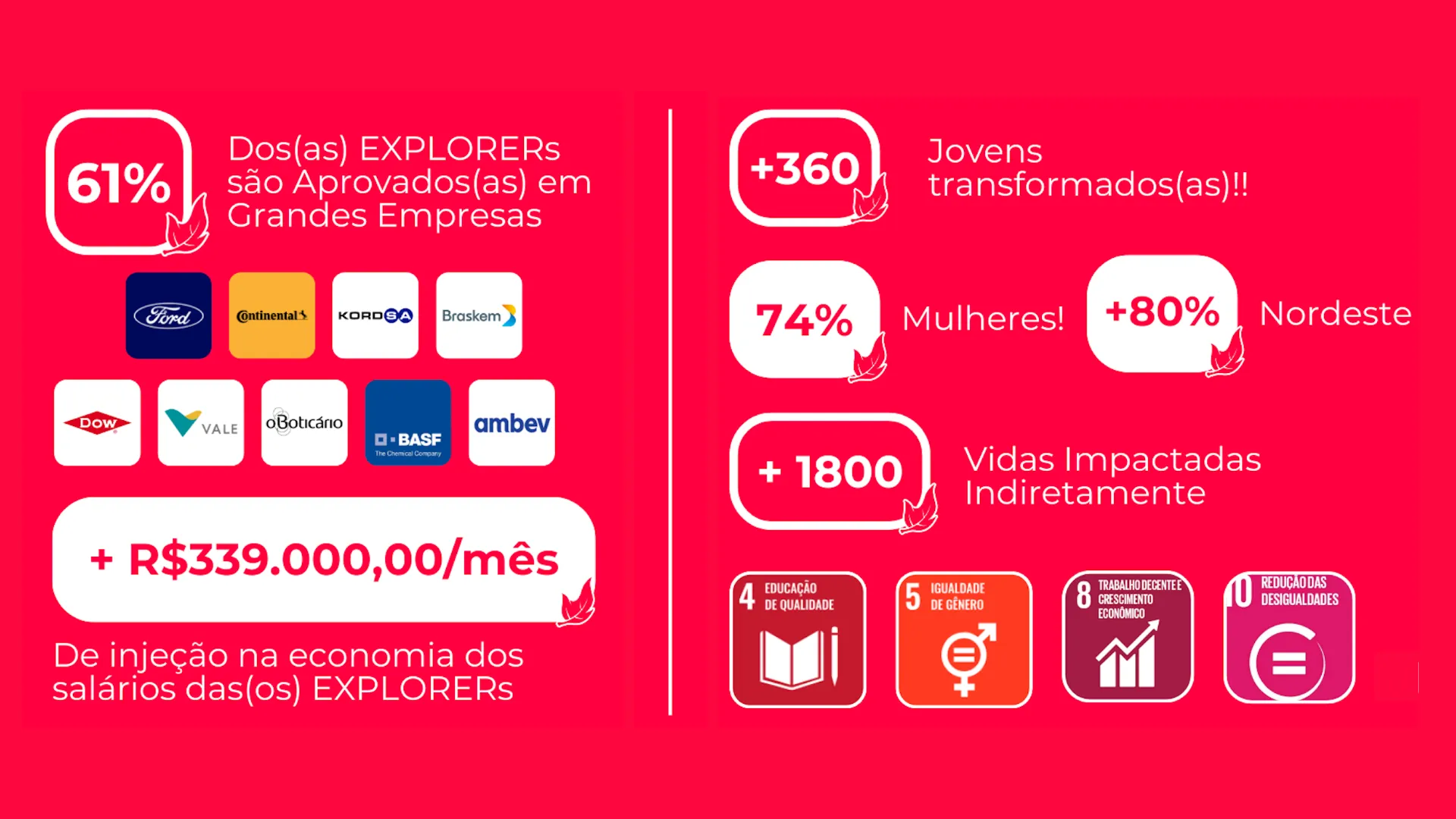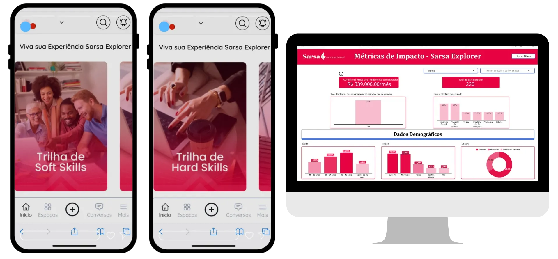 A Experiência Sarsa Explorer nasceu dentro do Ecossistema de Inovação e Impacto Social, sendo, ao longo dos anos, reconhecida por Programas, Aceleradoras e Iniciativas que apoiam soluções capazes de gerar Transformação Social por meio da Educação e da inclusão Produtiva.
